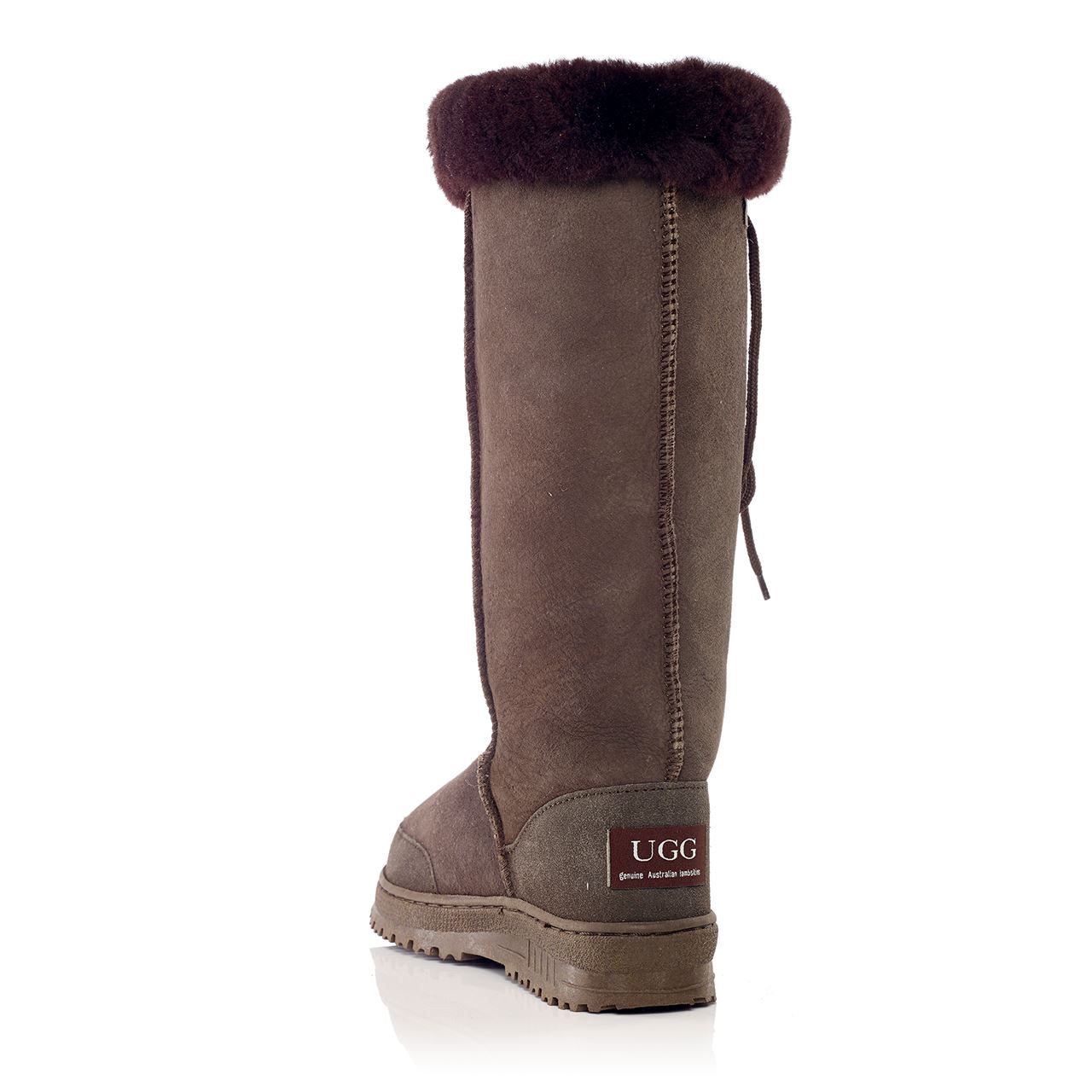 The Aspen is made from 100% sheepskin. Crafted with a sturdy sole, these lace up ugg boots are easier to put on and off with a wider calf.